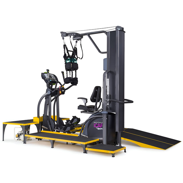 The SportsArt ICARE Complete Body Weight Support System is a revolutionary solution designed to support patients with neuromuscular disorders, including those affected by stroke, traumatic brain injury (TBI), spinal cord injury (SCI), and other conditions. It offers a unique “assist as needed” approach, emulating the supportive and intuitive actions of a therapist during gait training.