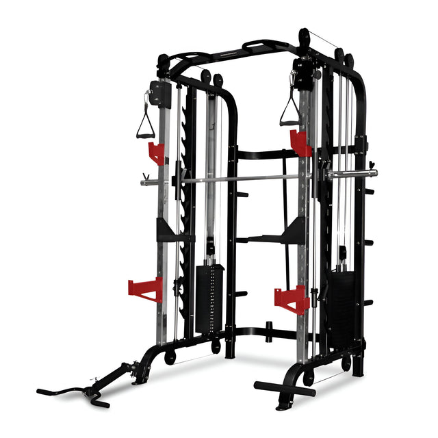 The BodyWorx Multi Functional Smith Cage System is a powerhouse strength-training solution designed for serious lifters. Combining a Smith machine, power rack, and functional trainer in one unit, it offers unmatched versatility for full-body workouts. Whether you're performing squats, presses, chin-ups or cable exercises, this machine has you covered.