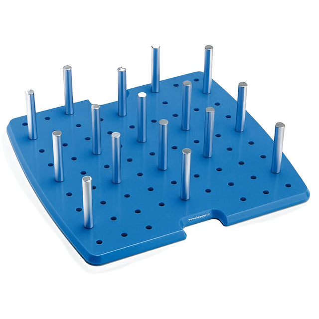 A larger square base compared to item AR10031-C. It comes with 16 metal cylinders that can be inserted freely into the 75 holes arranged in the base.