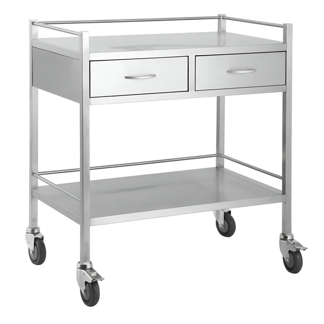 This CubicHealth Stainless Steel Double Trolley with 2 side-by-side drawers offers convenient storage in a compact design. The stainless steel finish ensures durability and easy maintenance, while the smooth-rolling wheels make it easy to move throughout the clinic or hospital.unca