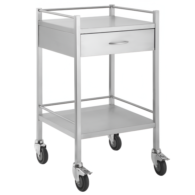 The CubicHealth Stainless Steel Single Trolley with 1 Drawer offers a convenient storage solution for medical supplies. The single drawer provides easy access to smaller items, while the open area below allows for larger equipment. The stainless steel design ensures long-lasting durability and easy cleaning.