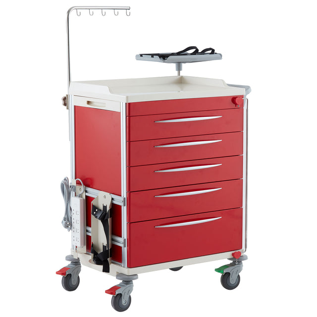Designed for emergency medical environments, the CubicHealth Emergency Trolley in Red is equipped with plenty of storage space for vital medical equipment and offers superior maneuverability.