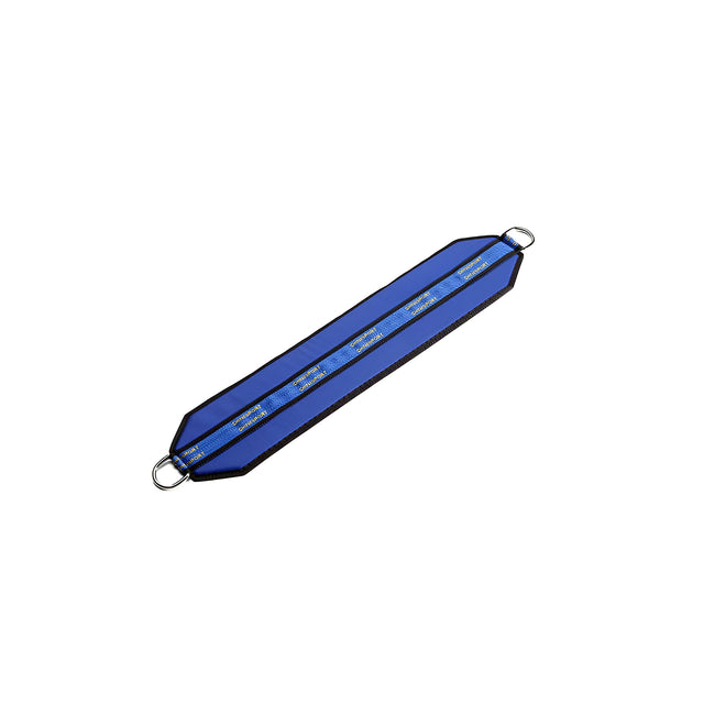 Padded strap with black synthetic leather upholstery and 35 mm diameter chromed rings at the ends. Comfortable and easy to disinfect, it provides support to lower/upper limbs or to keep the head suspended (single piece).