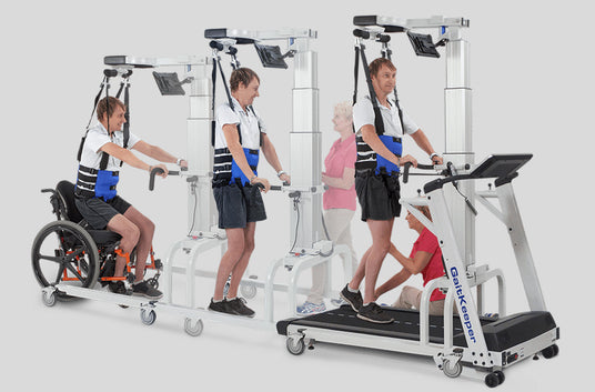 GaitKeeper treadmills are designed for rehab. With controls that are easilyaccessible by a clinician while assisting a client, a true zero starting speed forsafety with clients of all functional levels.