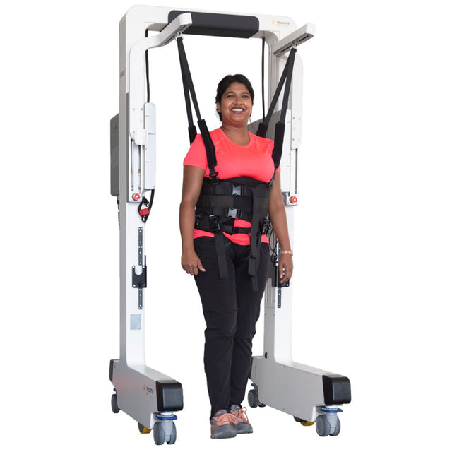 Supports walking across open spaces without the need for a treadmill, allowing patients to practice functional movements and improve real-world mobility.