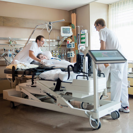 The Hocoma Erigo®Pro is an advanced early rehabilitation device designed to support patients with severe neurological or musculoskeletal impairments by enabling safe and intensive mobilisation from the earliest stages of recovery. Combining gradual verticalisation with robotic leg movement and cyclic leg loading, the Erigo®Pro facilitates early mobilisation, reduces the risk of complications associated with prolonged immobility, and promotes functional recovery.