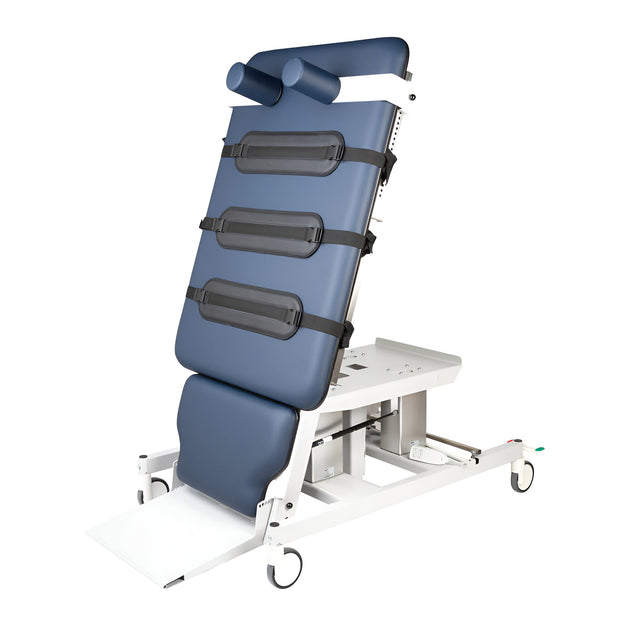 The Healthtec Hi-Capacity Slide Top Tilt Table with integrated weight scales provides a comprehensive solution for tilt therapy, allowing therapists to monitor patient progress while adjusting tilt positions. Featuring a sliding top with a single footplate, hoist access, and CPR quick-release for safety, this table ensures both ease of use and reliability. The weight scales add functionality for patients requiring detailed tracking.