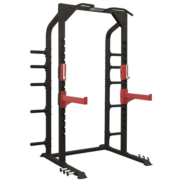 Built with heavy duty steel and powder coated and heat cured for superior durability. The Impulse Stirling Series Half Power Rack is an absolute beast with easy-to-use flexible measurements to allow for a massive range of exercises.
