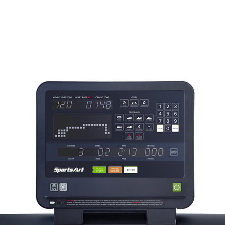The console offers clear, real-time data—including time, distance, calories, strides per minute, heart rate, METs, calorie rate, and cardio zone feedback. Users can choose from diverse preset training modes such as interval sessions, glute-focused workouts, heart rate-driven programs, and manual options for a tailored training experience.