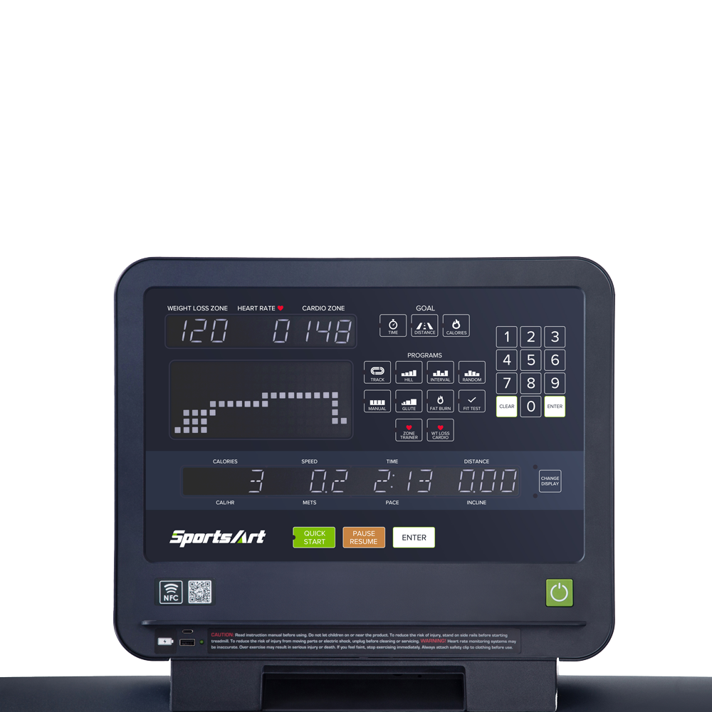 The SportsArt T663 Treadmill is a premium light commercial-grade treadmill designed for both performance training and rehabilitation. Offering customisable speed and incline settings, this treadmill features a cushioned deck and a sleek design to ensure optimal training conditions for users of all fitness levels.